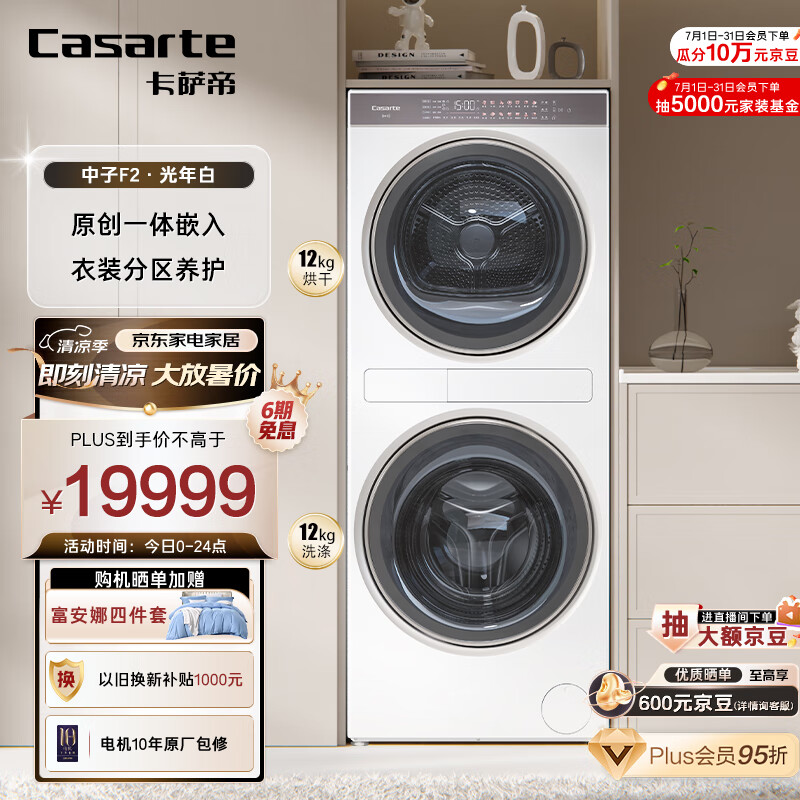 卡萨帝(Casarte)中子和美F2洗干集成机 12+12公斤 3D透视烘干 1.5米纯平嵌入 养护湿洗 紫外除菌 C9 YF12BL12W2EU1价格:19999.00元!