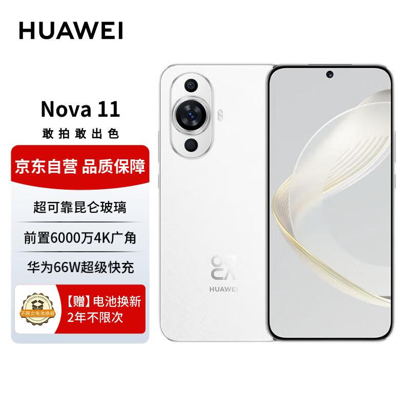 华为nova11手机 超可靠昆仑玻璃 前置6000万超广角人像 256GB 雪域白价格:2699.00元!