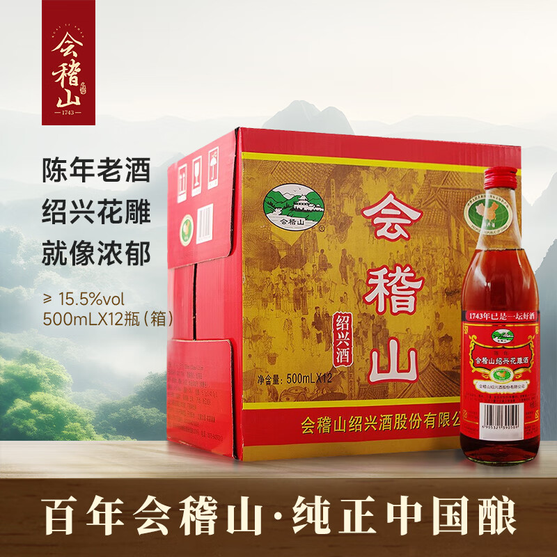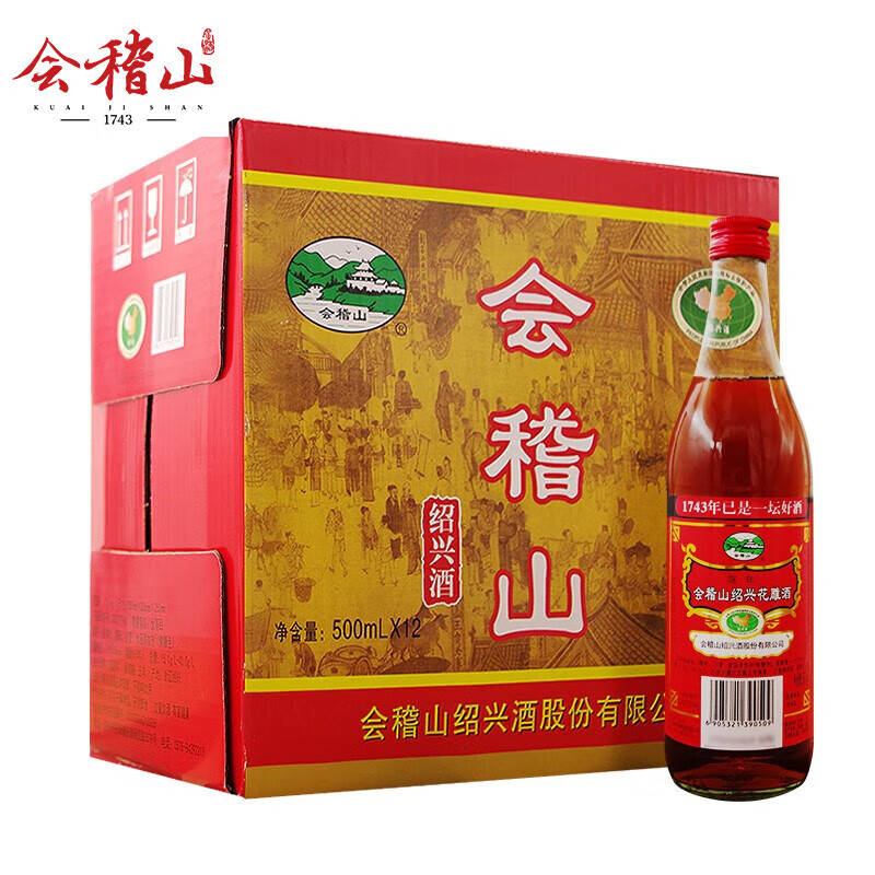 会稽山 陈年花雕 半干 绍兴 黄酒 500ml*12瓶 整箱装价格:99.00元!