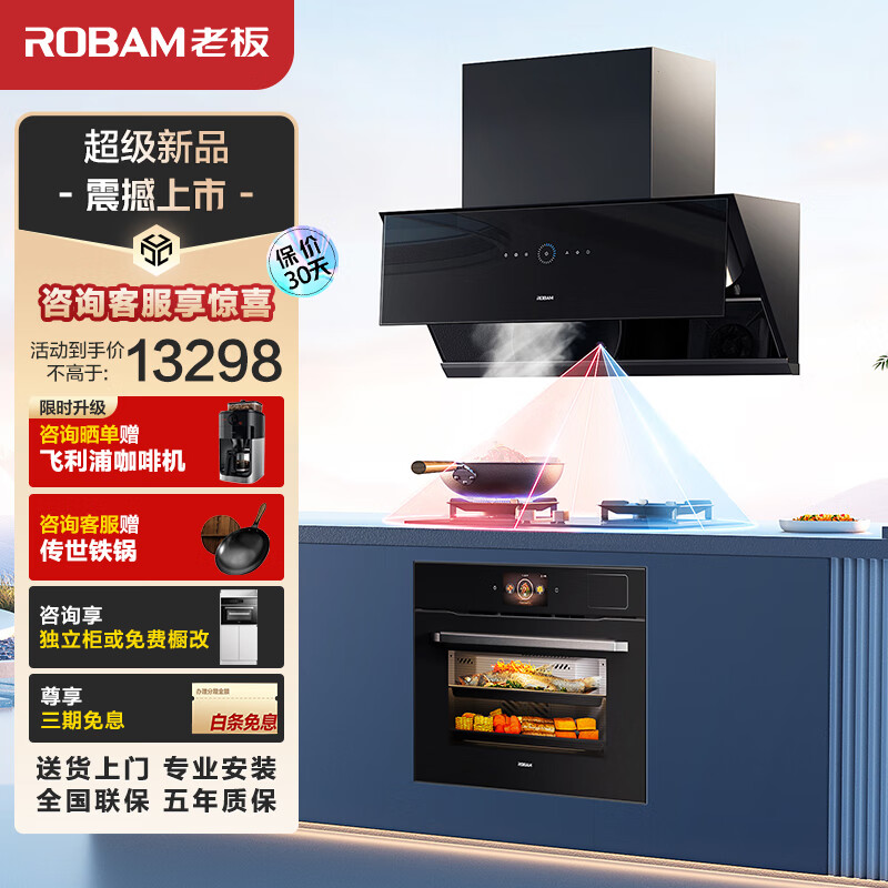 老板(Robam)厨房多件套29A9S+57B6D+CQ9068A烟灶蒸烤套装26风量抽油烟机彩屏蒸烤一体机嵌入式 (天然气)价格:13298.00元!