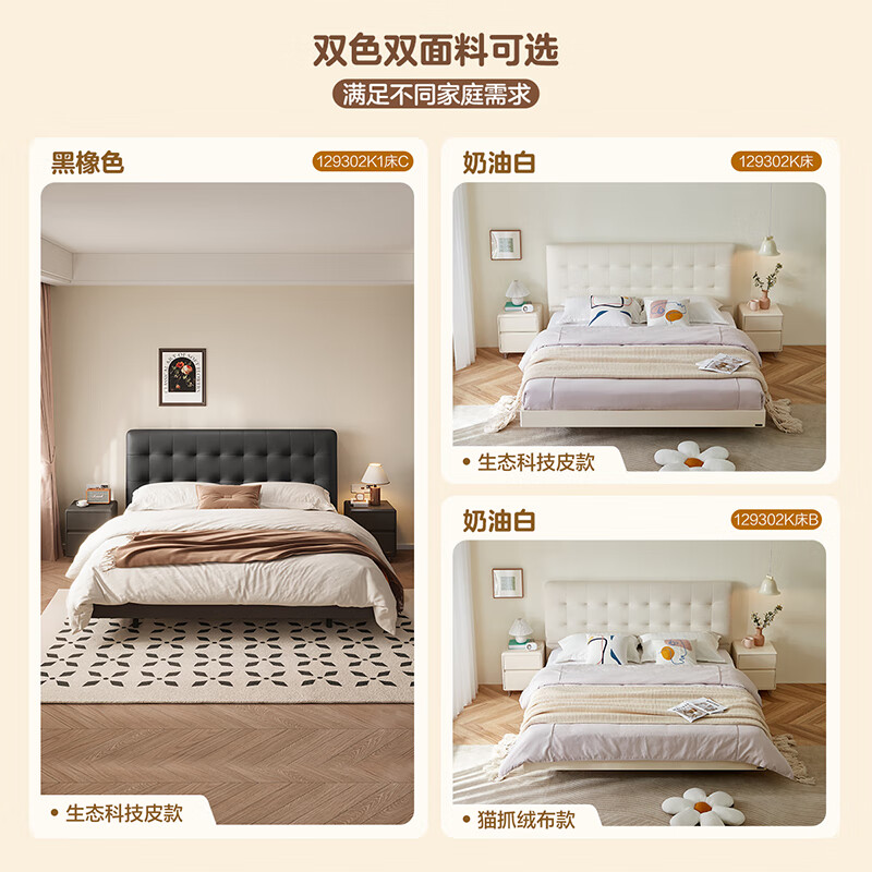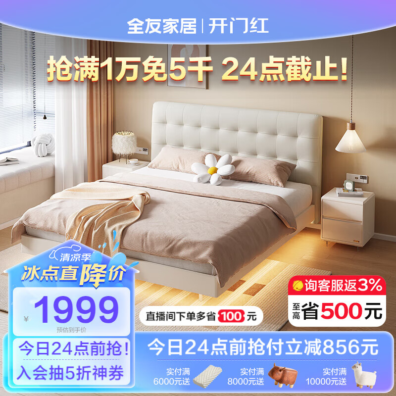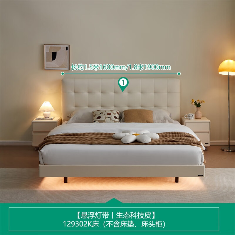 全友家居 现代简约悬浮皮床法式奶油风主卧大床1.5米双人床软床129302价格:2855.71元!