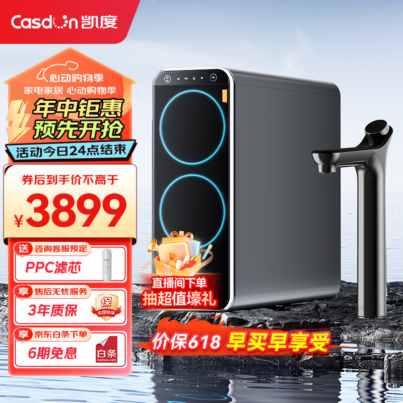 凯度(CASDON)厨下式净水器加热直饮一体机 厨下净水器RO反渗透 大通量净水器 热水器 直饮机C3价格:4299.00元!