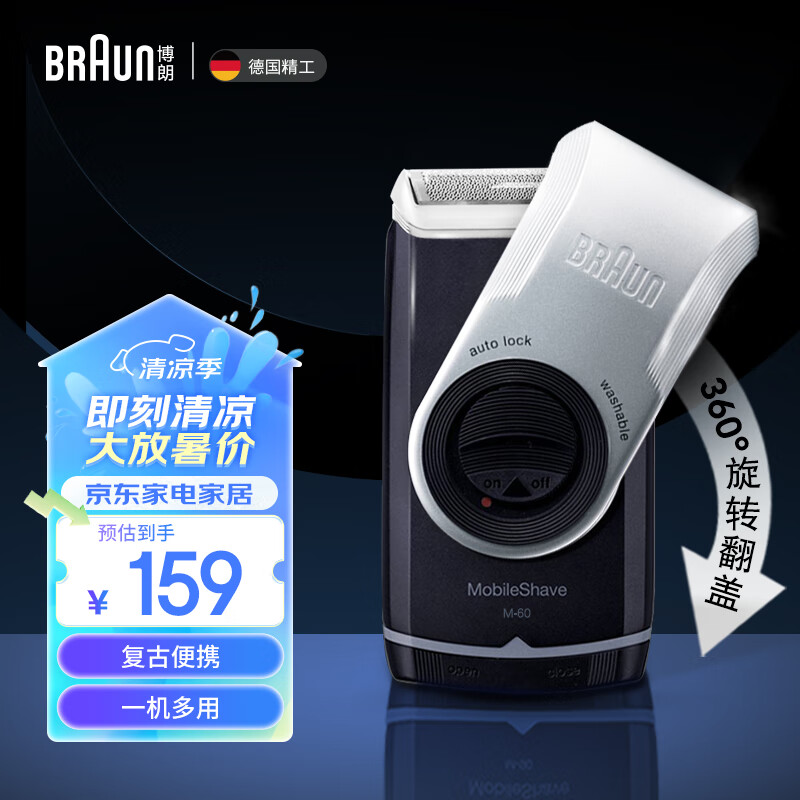 博朗(BRAUN)迷你全身水洗电动剃须刀往复式刮胡刀男士送老公差旅便携复古便携 一机多用送男友价格:159.00元!