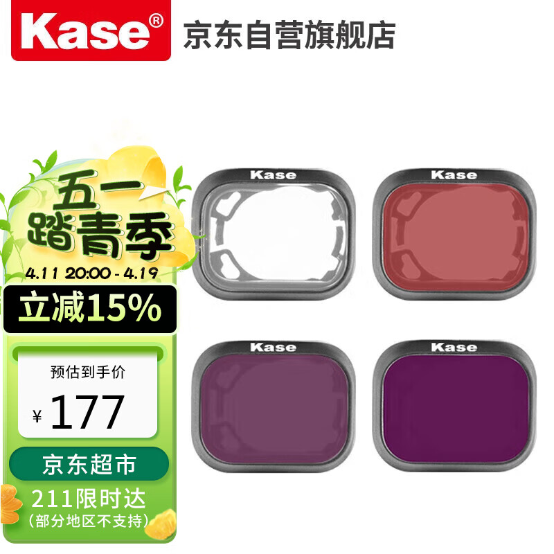 卡色(Kase) 适用于大疆 mini3pro mini3滤镜 无人机滤镜套装 (UV+ND8+ND16+ND64)四合一套装价格:207.62元!