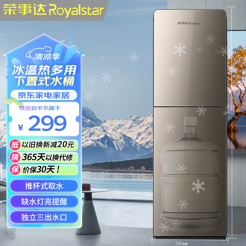荣事达(Royalstar)饮水机下置式家用立式冷热两用制冷型下置水桶饮水器制冷型YLR0.8-5X82价格:299.00元!