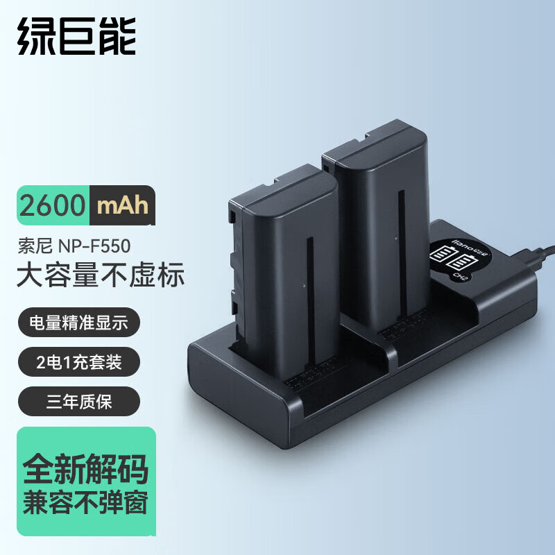 绿巨能(llano)索尼电池 NP-F550相机电池/充电器套装 适用NP-F330/F530/F570/F970/F750等 电池*2充电器*1价格:189.00元!