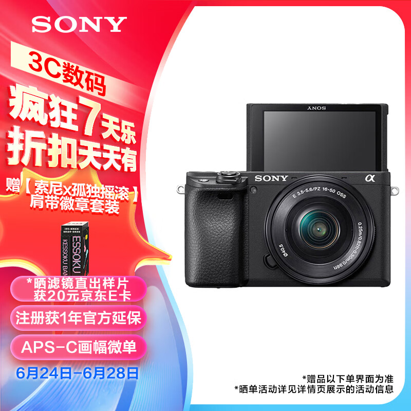 索尼(SONY)Alpha 6400 APS-C画幅微单数码相机 标准套装 黑色(SELP1650镜头 ILCE-6400L/A6400L/α6400)价格:7499.00元!