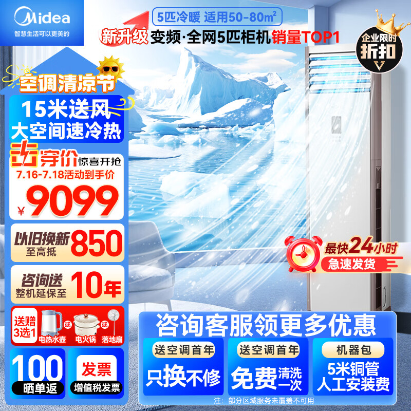美的(Midea)中央空调5匹柜式空调 5p立式商用柜机 冷暖变频新能效380V RFD-120LW/BSDN8Y-PA401(B3)A包5米铜管价格:9099.00元!