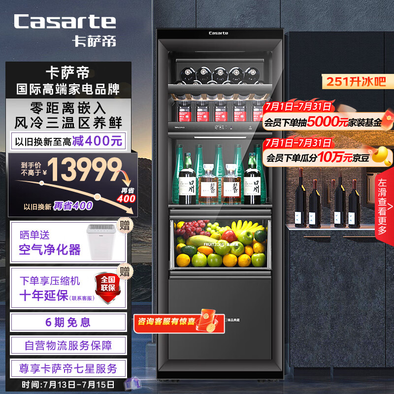 卡萨帝(Casarte)251升三温区原创平嵌零距离嵌入暖藏冰吧 茶叶饮料水果冷藏柜保鲜柜小型冰箱LC-251WLCDFM1U1价格:13999.00元!