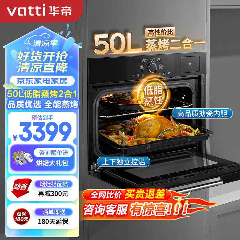 华帝(VATTI)蒸烤箱一体机嵌入式 蒸箱烤箱家用 50L大容量 智能app预约 搪瓷内胆 JYQ50-i23011价格:3399.00元!