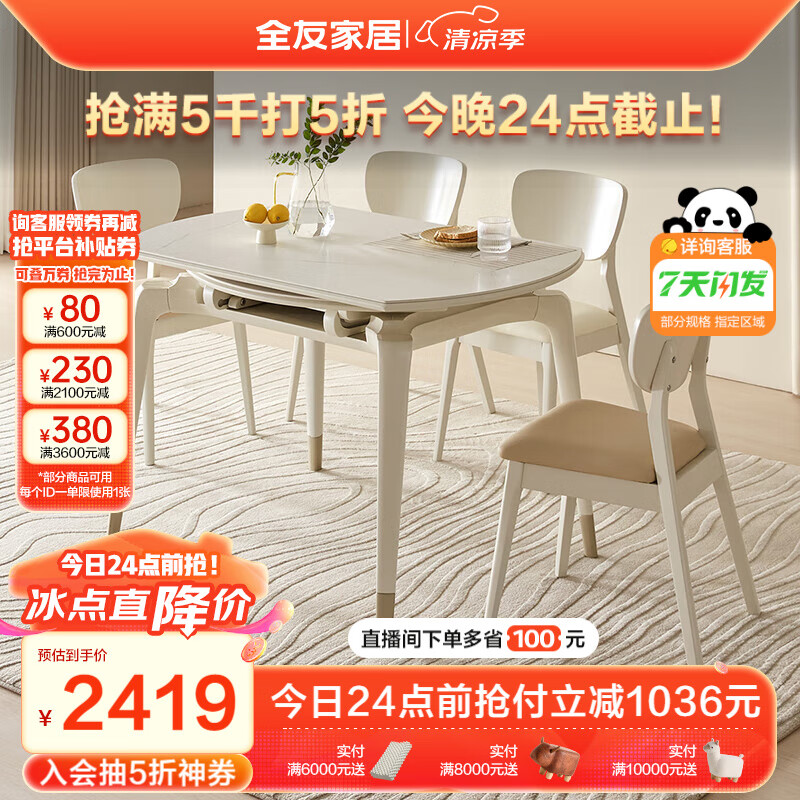 全友家居 餐桌现代简约岩板餐桌可圆可方伸缩功能吃饭桌子家具DW1121B价格:3455.71元!