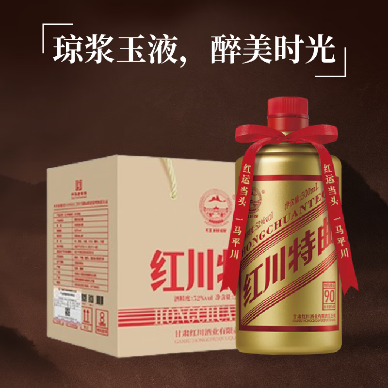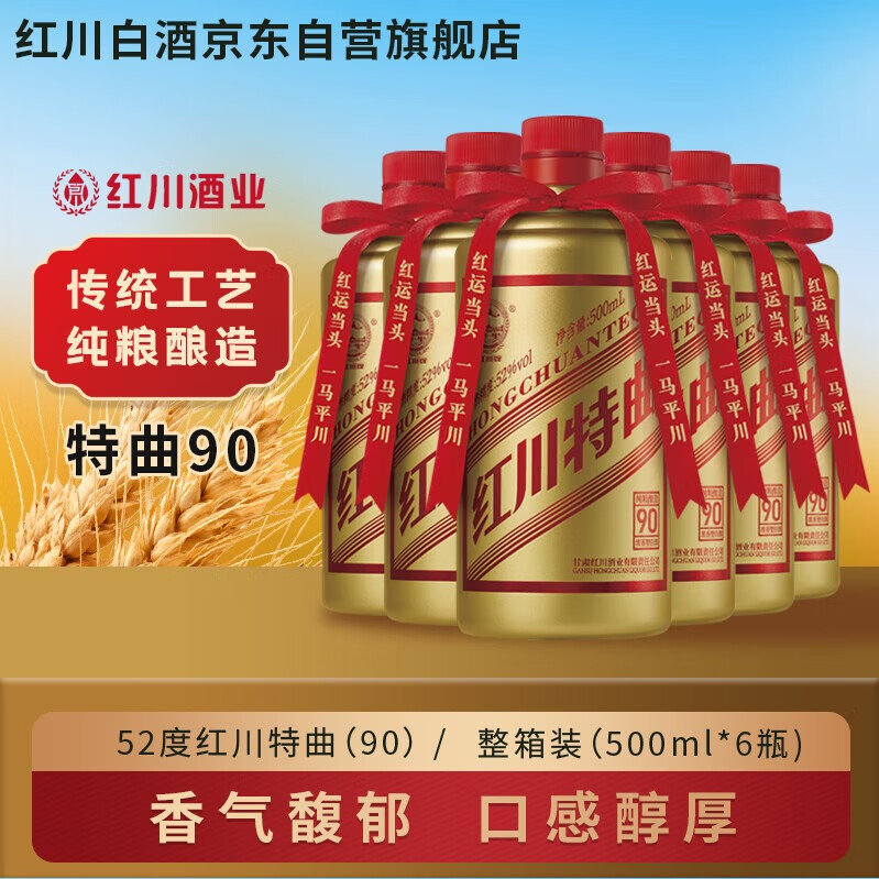 红川特曲90纯粮浓香型白酒52度高度500ml*6瓶整箱装白酒甘肃特产名酒价格:375.00元!