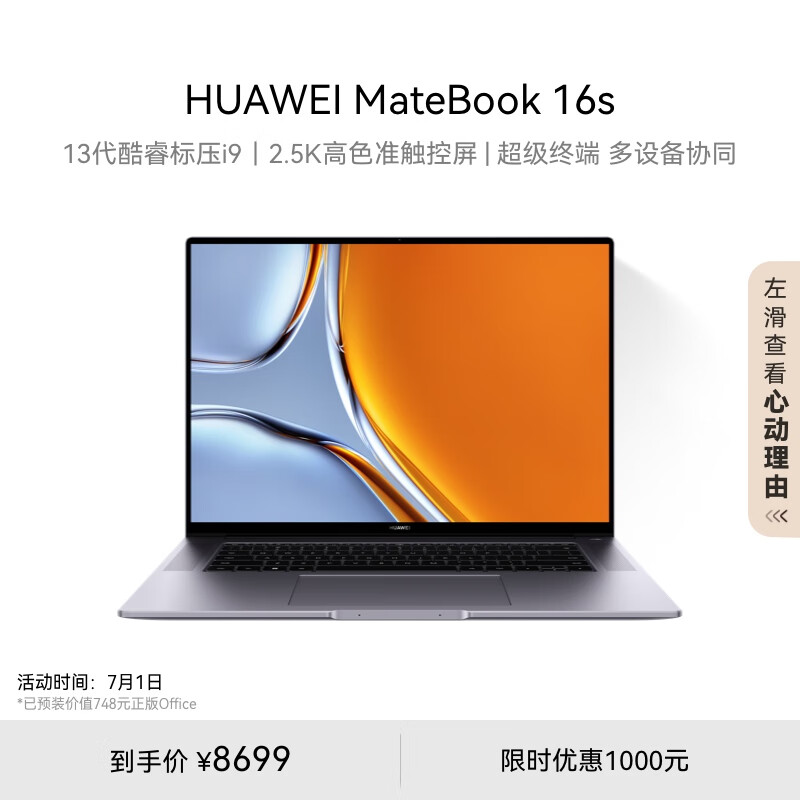 华为MateBook 16s 笔记本电脑 13代酷睿标压处理器/2.5K高色准触控屏/轻薄办公本 i9 32G 1T 深空灰价格:8699.00元!