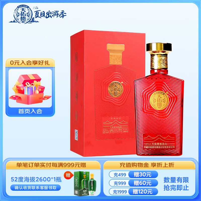 天佑德 海拔祁连山 52度 清香型白酒 500ml单瓶装【青海青稞酒】价格:168.00元!