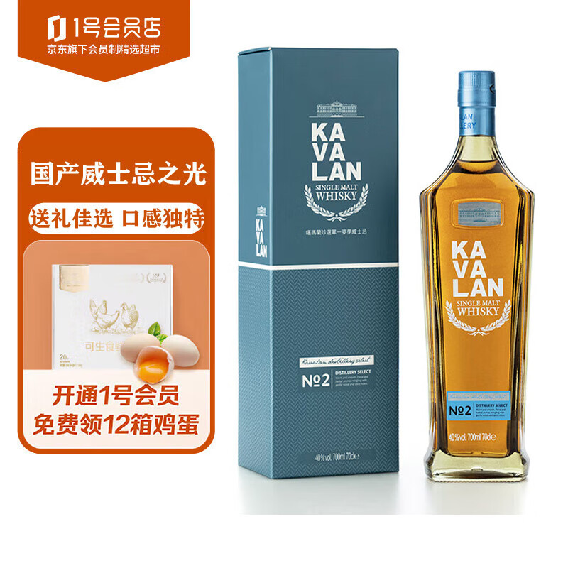 噶玛兰(Kavalan)珍选二号NO.2单一麦芽 中国台湾金车噶玛兰威士忌700ml 1号会员店价格:199.00元!