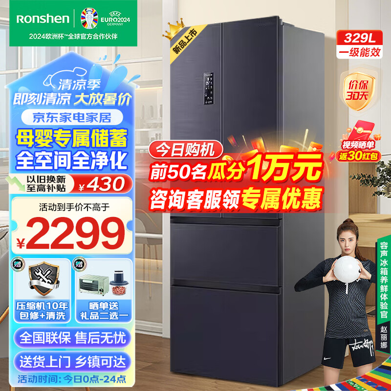 容声(Ronshen)冰箱329升四开门法式多门风冷无霜净味一级能效除菌母婴臻储超薄家用可嵌入电冰箱BCD-329WD16MP价格:2599.00元!
