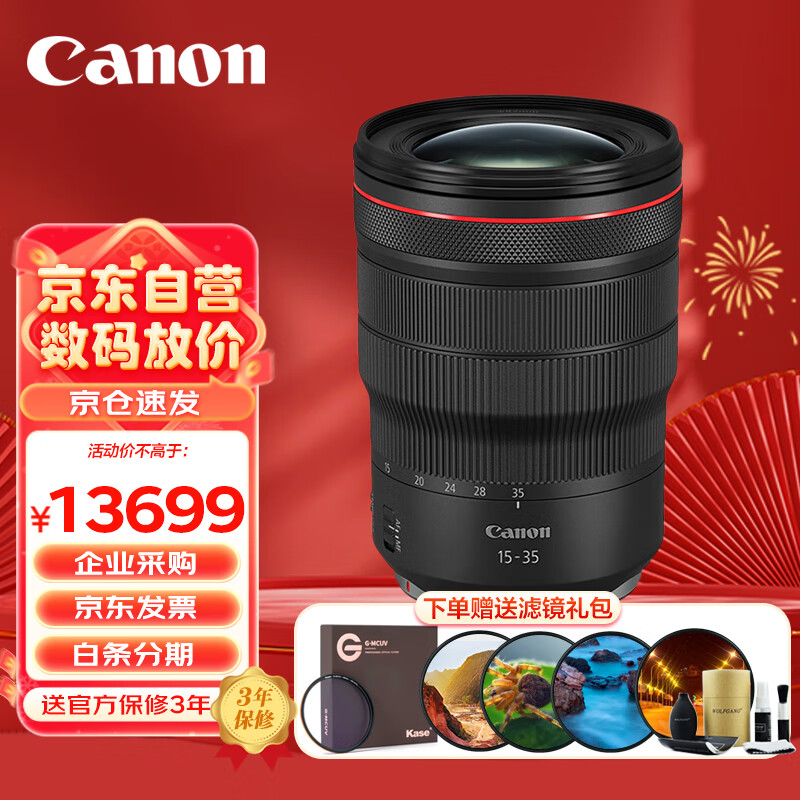 佳能(Canon)RF15-35mm F2.8 L IS USM L级广角变焦镜头 EOS R系统卡口全画幅微单相机专用 滤镜礼包套装价格:13999.00元!