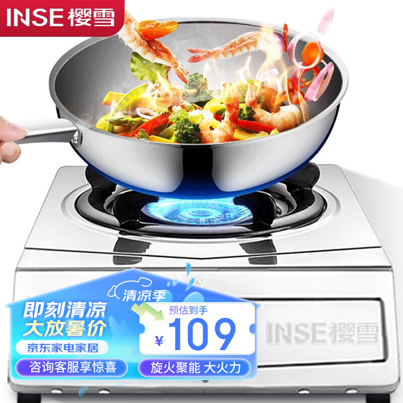 樱雪(INSE)燃气灶单灶 台式不锈钢面板4.5KW单眼煤气灶 家用猛火节能煤气炉具 JZT-T1501(G)WS天然气价格:109.00元!
