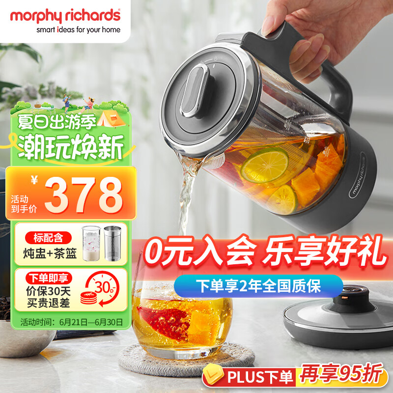 摩飞电器(Morphyrichards)养生壶 分体便携式迷你煮茶器 烧水壶 小型办公室家用 多功能煮茶壶分体式热水壶0.6L MR6085 灰价格:378.00元!
