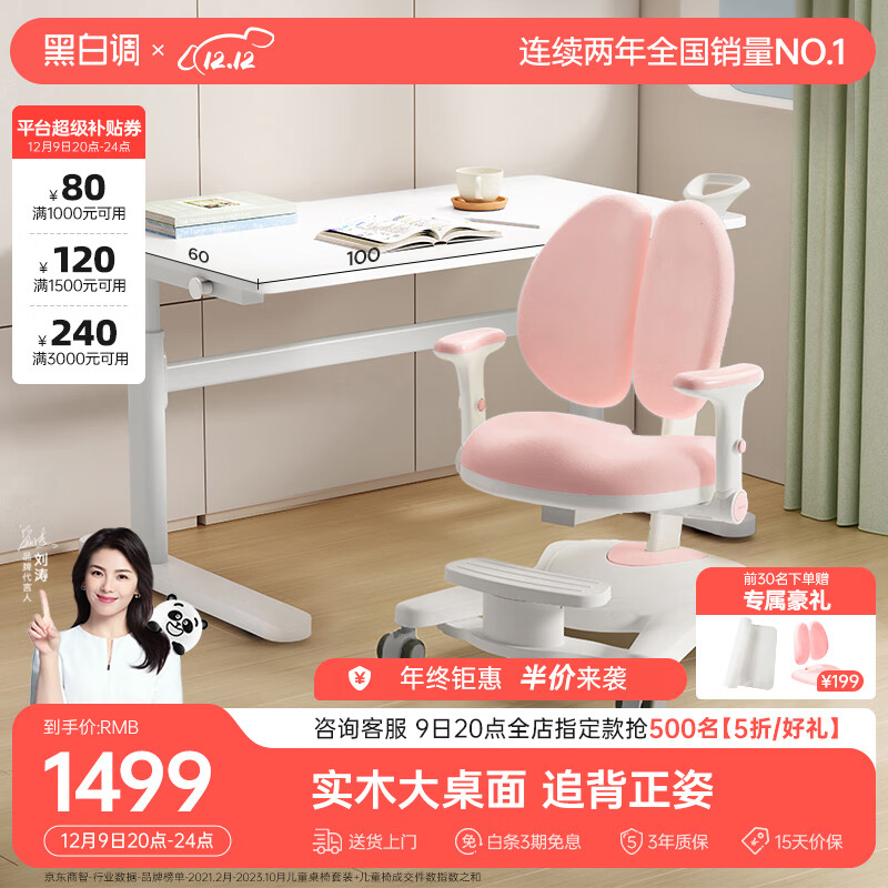 黑白调学习时光A1学习桌【可升降大桌面 进口环保实木】儿童书桌电脑桌 1m白色价格:1699.00元!