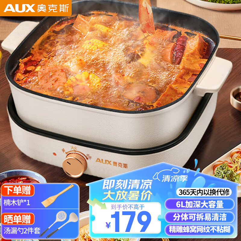 奥克斯(AUX)电火锅 火锅专用锅 电锅火锅锅多功能锅分体式家用电热锅电炒锅 6L M8289价格:179.00元!