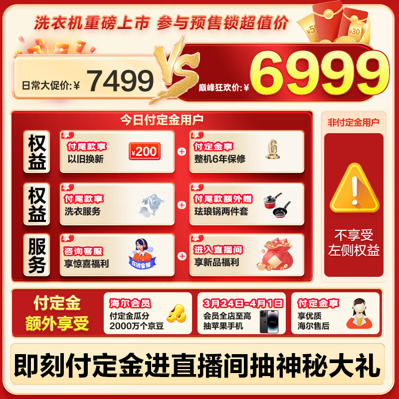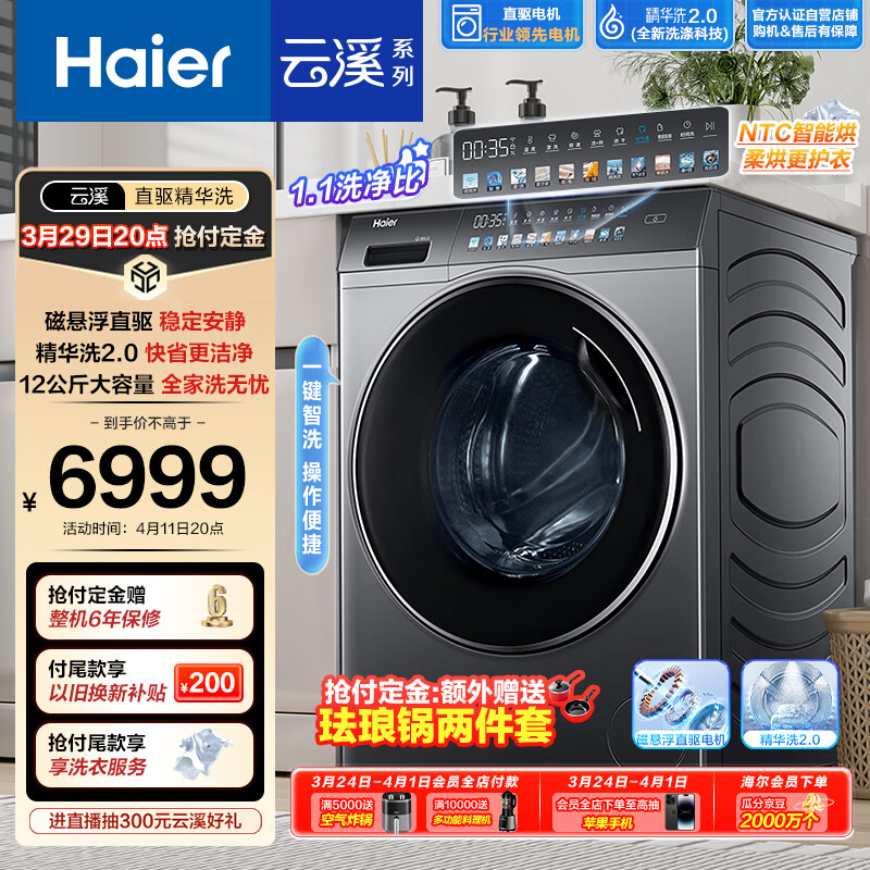 海尔(Haier)滚筒洗衣机全自动 直驱精华洗 云溪186 12公斤大容量 超薄 以旧换新XQG120-HBD186PLUSLU1价格:6999.00元!
