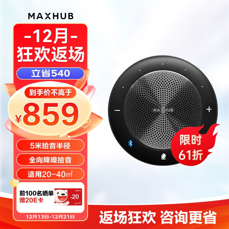 MAXHUB视频会议全向麦克风/5米拾音免驱无线连接蓝牙扬声器/桌面音箱/20-40㎡内会议室解决方案 BM20价格:859.00元!