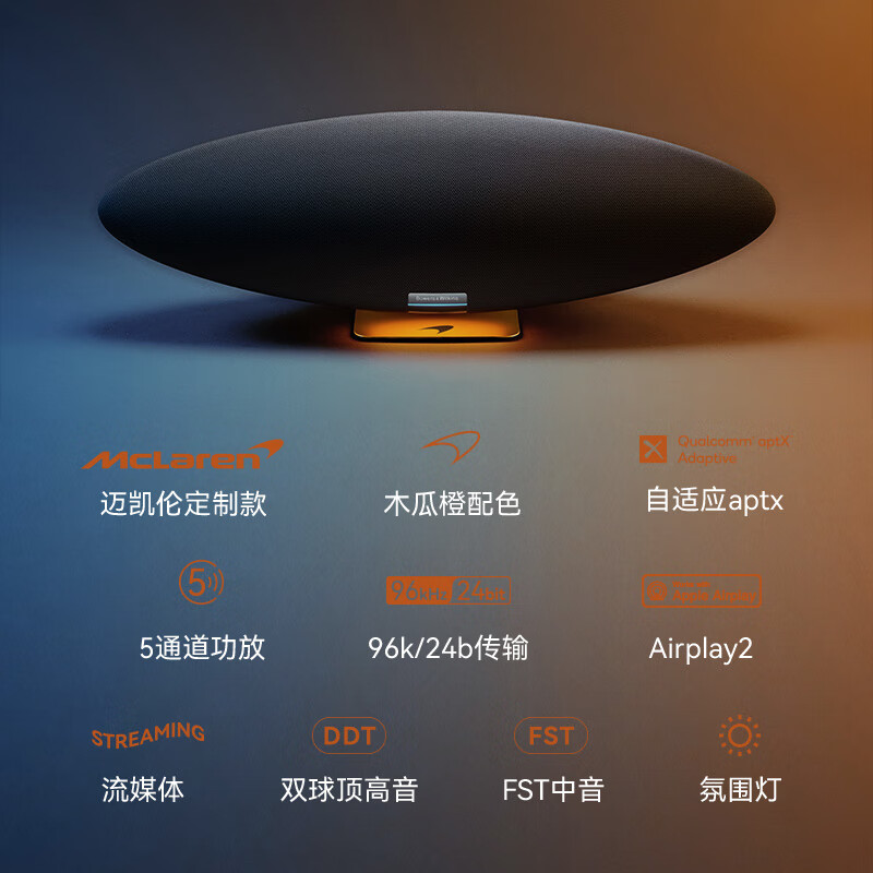 宝华韦健(B&W) Zeppelin齐柏林飞艇 迈凯伦定制款 无线HIFI蓝牙音箱Bowers&Wilkins高保真家用有源桌面音响价格:4399.00元!