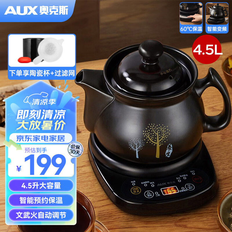奥克斯(AUX)煎药壶中药锅分体式 4.5L中药壶家用全自动智能熬药电砂锅 免看管电药锅煲药壶陶瓷 HX-YS0301价格:199.00元!