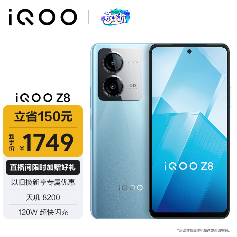 vivo iQOO Z8 12GB+512GB 星野青 天玑 8200 120W超快闪充 5000mAh超长续航 5G电竞手机价格:1899.00元!