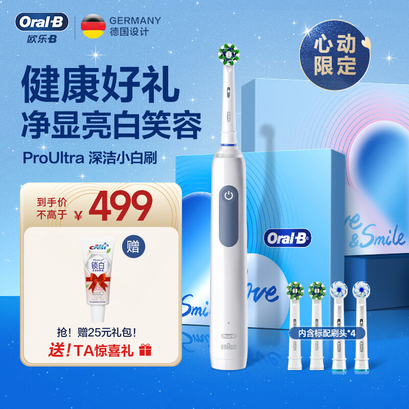 欧乐B成人电动牙刷Pro4Ultra男士刷3D声波圆头Pro系列深度清洁牙龈按摩送男友送女友春节送礼情人节礼物价格:499.00元!