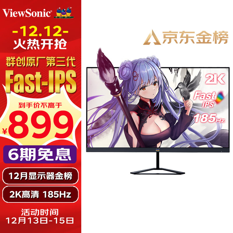 优派27英寸 2K电竞显示器 原生180Hz超频185Hz FastIPS 低蓝光电脑屏幕HDR满血电竞小金刚 外接显示屏 VX2758价格:999.00元!