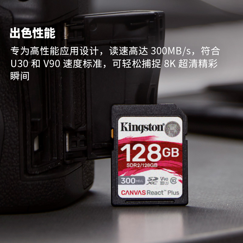 金士顿(Kingston)128GB SD存储卡 U3 V90 8K 相机内存卡 高速sd卡大卡 读速300MB/s 写速260MB/s 微单/单反相机价格:699.00元!