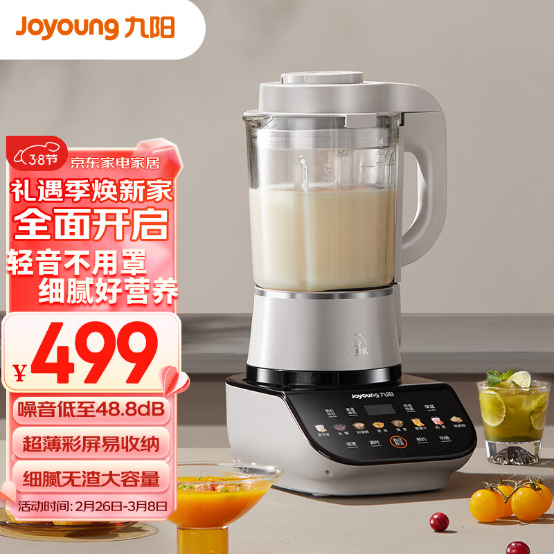 九阳(Joyoung)破壁机 太空系列轻音破壁机 家用榨汁机 豆浆机 多重降噪 触控彩屏 纤薄底座 L18-P557价格:539.00元!