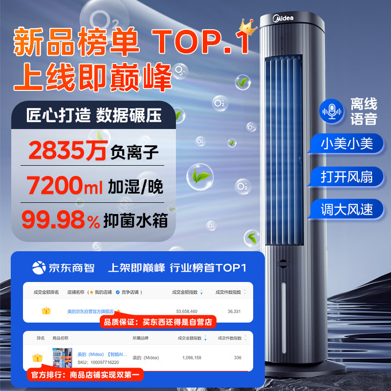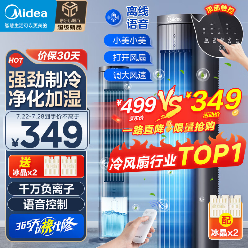 美的(Midea)【强劲制冷】家用空调扇加湿冷风扇智能语音遥控负离子净化落地冷风机水冷塔扇制冷小空调ACA10TJR价格:499.00元!