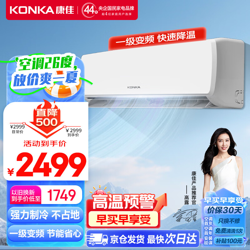 康佳(KONKA)空调 2匹挂机 新一级能效 变频冷暖 强劲除湿 高温自清洁 壁挂式空调 KFR-51GW/HG1以旧换新价格:2499.00元!