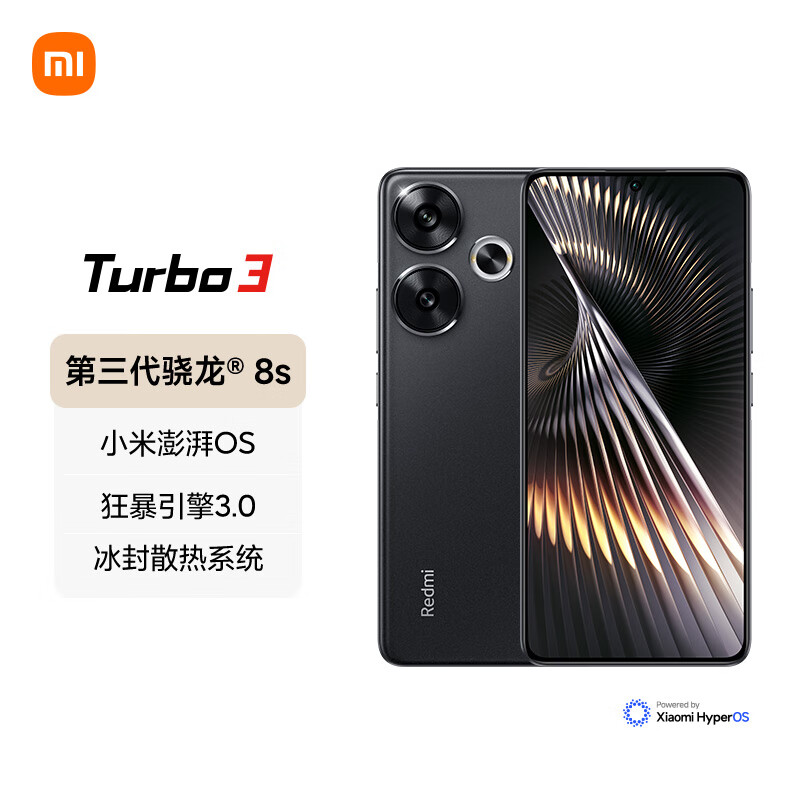 小米Redmi Turbo 3 第三代骁龙8s 小米澎湃OS 12+512 墨晶 AI功能 红米5G手机价格:2099.00元!