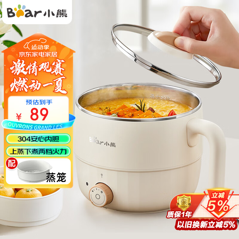 小熊(Bear)电煮锅 宿舍小锅 小电锅 电热锅蒸锅 学生寝室一体泡面火锅多功能多用途0涂层DRG-F12H2 配蒸笼价格:89.00元!