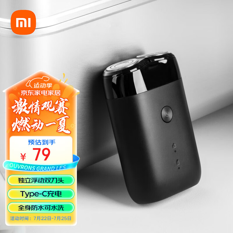 米家电动剃须刀S100 小米刮胡刀 旋转双刀头全身水洗 90分钟续航Type-C快充 送男生七夕情人节礼物推荐价格:79.00元!
