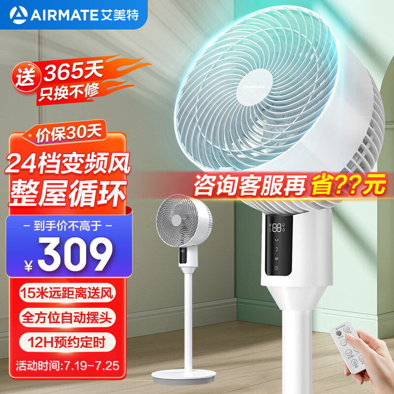 艾美特(AIRMATE)24档直流变频空气循环扇家用轻音节能换气电风扇3D自动摇头四季通用落地扇换气降浊电扇 FA18-RD48价格:339.00元!