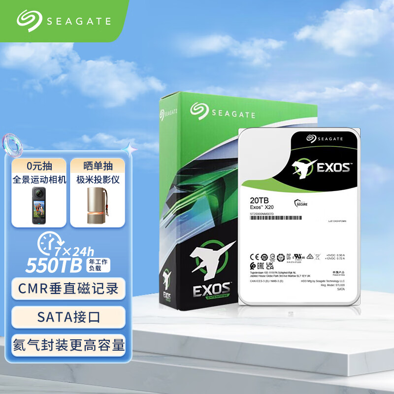 希捷(SEAGATE)企业级硬盘 20TB 256MB 7200RPM CMR垂直 SATA 希捷银河Exos X20系列 服务器硬盘价格:2999.00元!