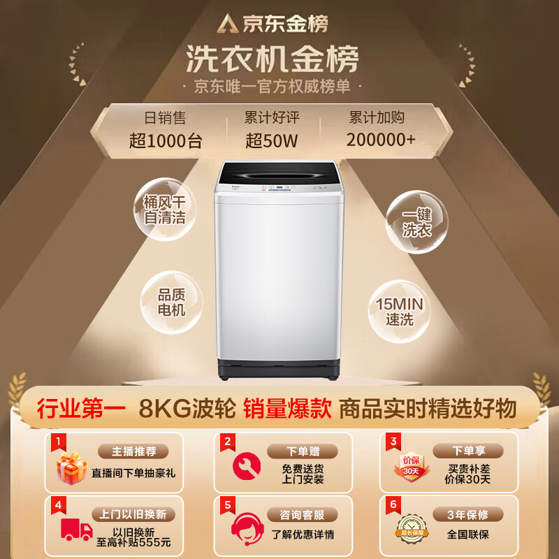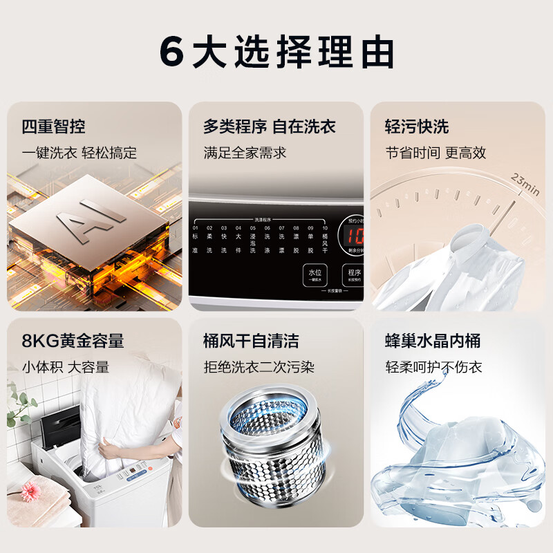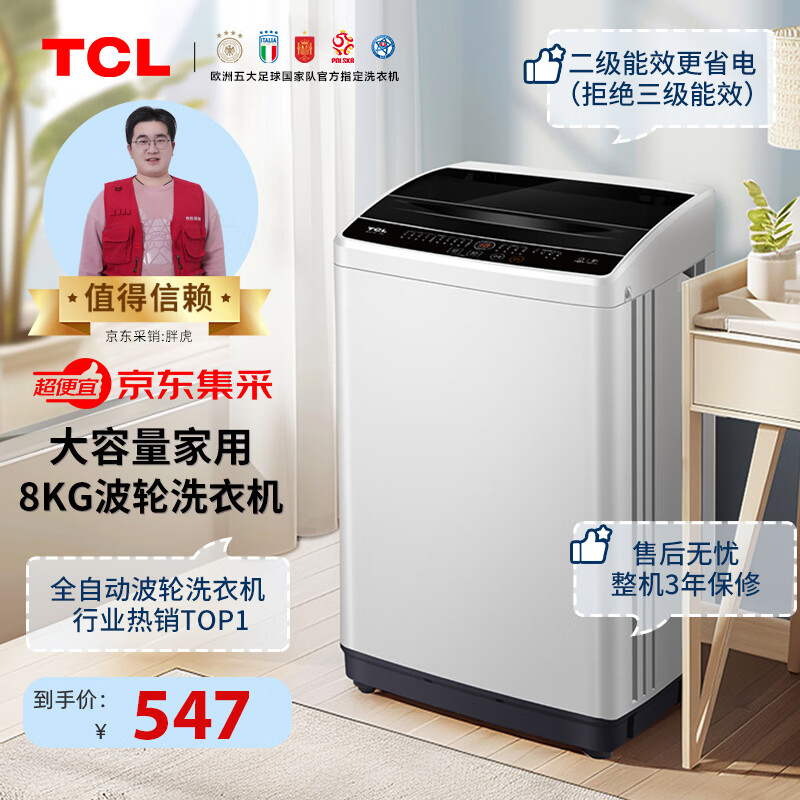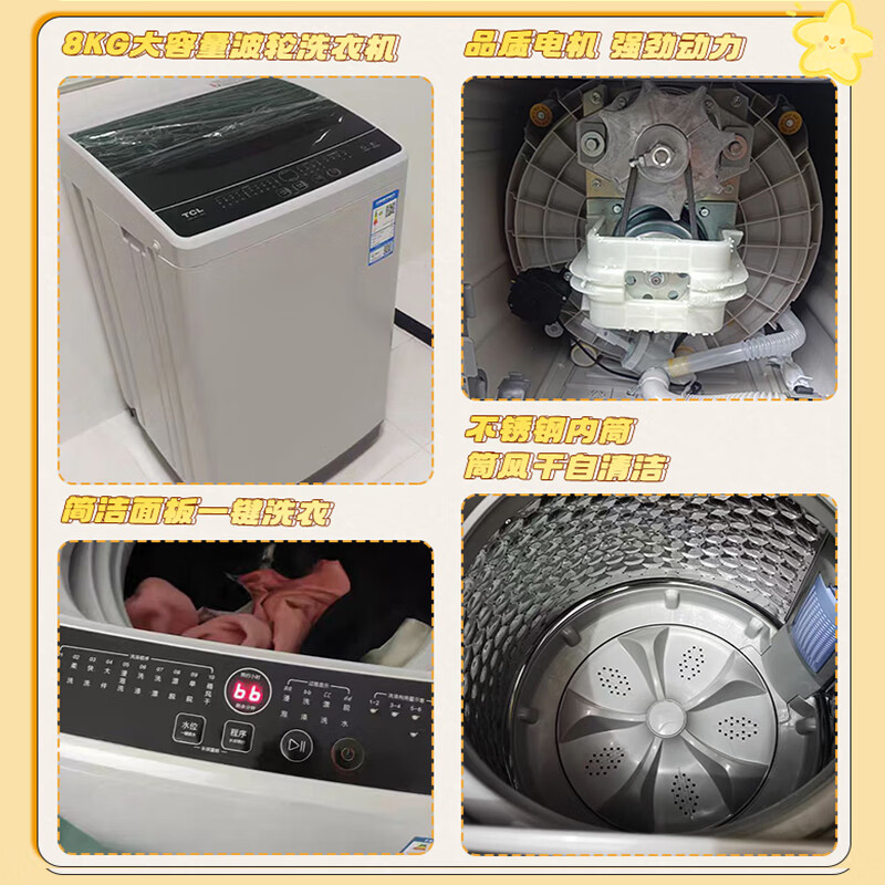 TCL 8KG智控洗衣机L100 大容量波轮 全自动 洗衣机家用 以旧换新 宿舍租房神器 B80L100价格:599.00元!