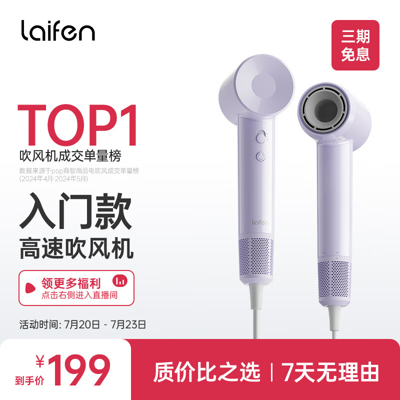 徕芬Laifen SE Lite 家用入门款高速吹风机 莱芬大风力速干低噪音学生宿舍便携风筒 赠七夕情人节礼物 SE lite紫色价格:300.00元!