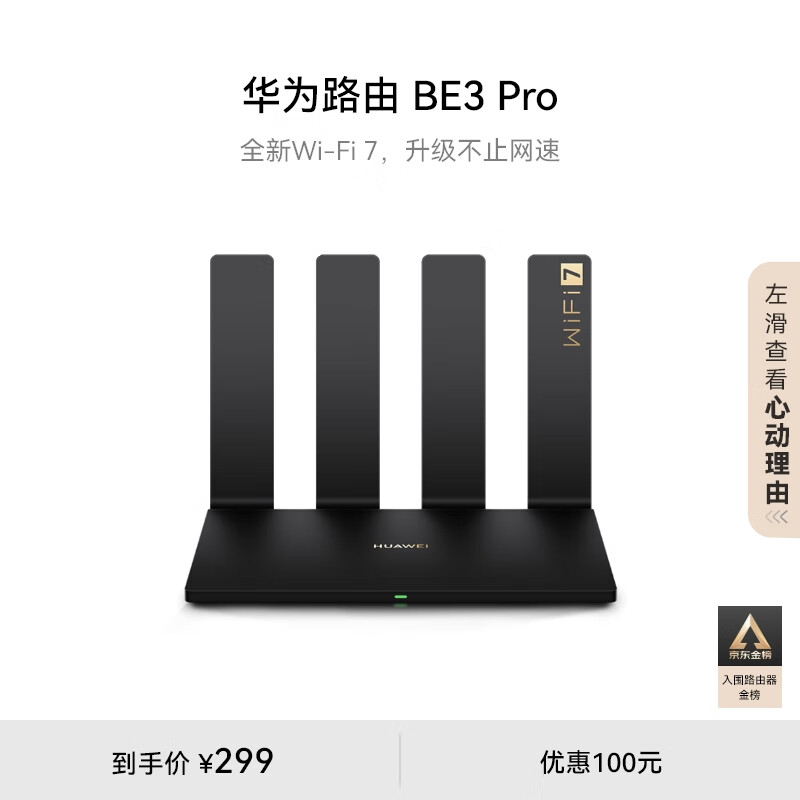 华为路由 BE3 Pro 【 Pura70上网好搭档】四核WiFi 7 双频聚合 千兆路由器 无线家用路由器wifi7价格:399.00元!
