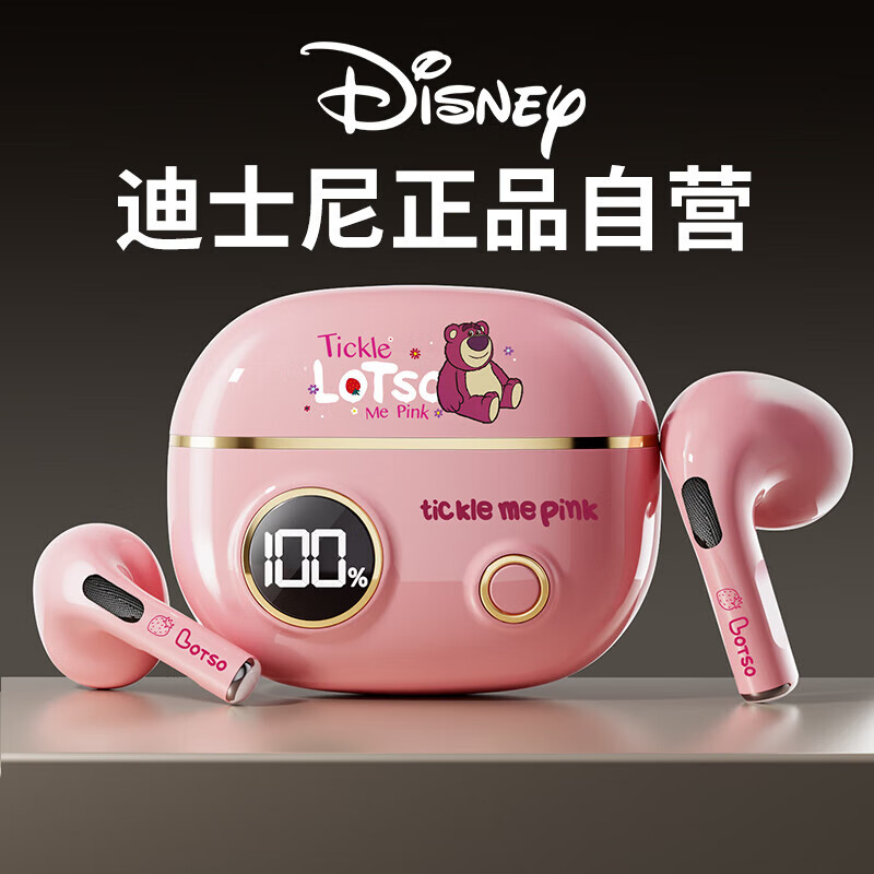 迪士尼(DISNEY)【精选推荐智能显屏】无线蓝牙耳机半入耳式游戏降噪跑步运动 通用苹果华为小米YP42【粉草莓熊】价格:109.00元!