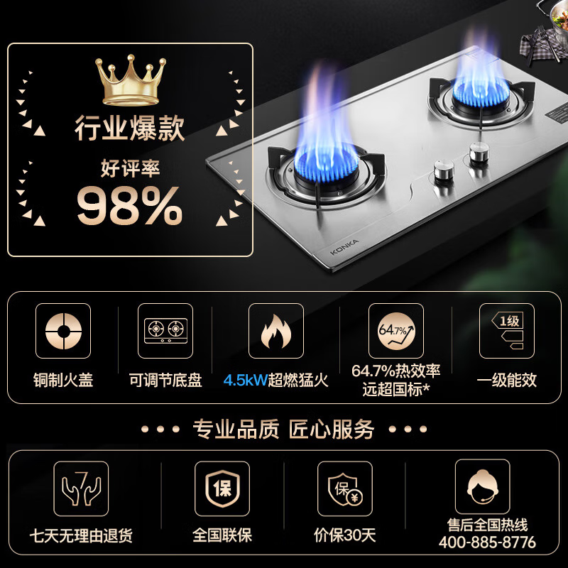 康佳(KONKA)燃气灶煤气灶双灶家用 4.5kW液化气嵌入式台式双灶具 不锈钢 煤气炉灶台 JZY-G420Y(液化气)价格:299.00元!