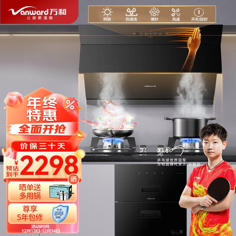 万和(Vanward)烟灶消三件套 侧吸式自动清洗 油烟机燃气灶具消毒柜厨房多件套装 DJ738+B7L51+D5(天然气)价格:2298.00元!