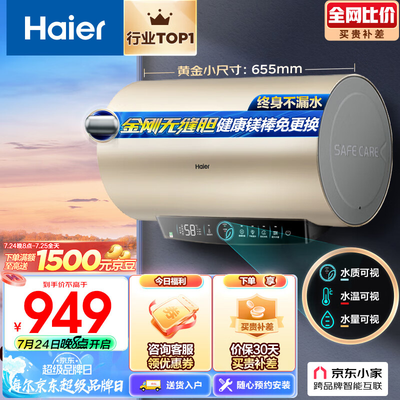 海尔(Haier)50升【金刚无缝胆】免换镁棒电热水器 家用储水式节能大水量WiFi一级能效 EC5001-PD3(U1)以旧换新价格:1049.00元!