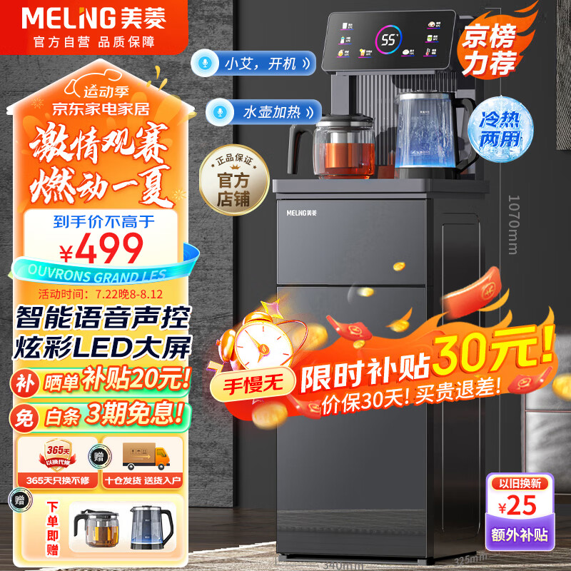 美菱(MeiLing)智能语音遥控茶吧机家用高端立式饮水机下置桶大屏一键选温全自动制冷制热款MY-C912B(语音款)价格:529.00元!