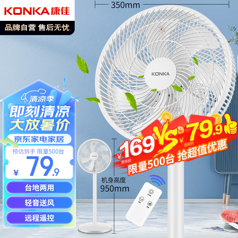 康佳(KONKA)电风扇遥控家用风扇轻音小风扇台地两用空气循环扇立式大风量摇头落地扇节能低噪电扇KLDS-3001E-P价格:119.90元!
